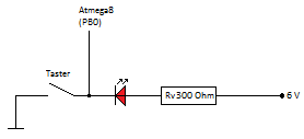 Hallo liebe Elektroniker. Ich würde gerne einen Taster an einen Atmega8 anschließen. Bei Tastendruck soll die rote LED leuchten. Meine Frage ist, kann der Atmega8 den Taster dann noch gescheit einlesen, oder kriegt er da Probleme? Habe ja nun keine 10K nach 5Volt wie wie im Tutorial beschrieben, sondern eine LED mit 300 Ohm... Vielen Dank, Emil