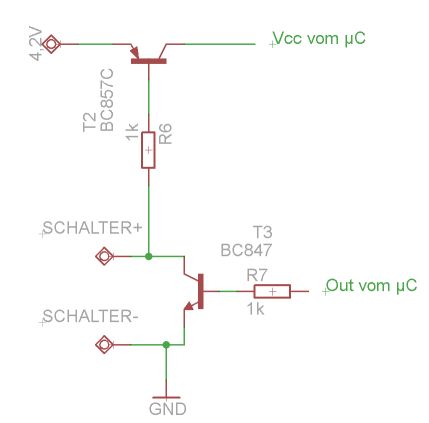 Vielen Dank! Ein Layout gespart. Das bedeutet ich benötige mindestens noch NPN und einen Widerstand oder geht es irgendwie Bauteilschonender?