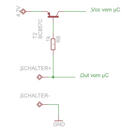 Hallo! Meine Kenntnisse von Transistoren (insbesondere PNP) sind nicht die Welt. Würde diese Schaltung funktionieren? Erklärung: Die Schaltung ist Stromlos. Über einen Taster soll der PNP kurz durchsteuern, den µC anwerfen, welcher dann über einen Port ein GND-Signal auswerfen soll. Nach einer programmierten Zeit soll sich die Schaltung selbstständig ausschalten, indem ein HIGH am Ausgang des Ports geschaltet wird. Ist das so machbar?