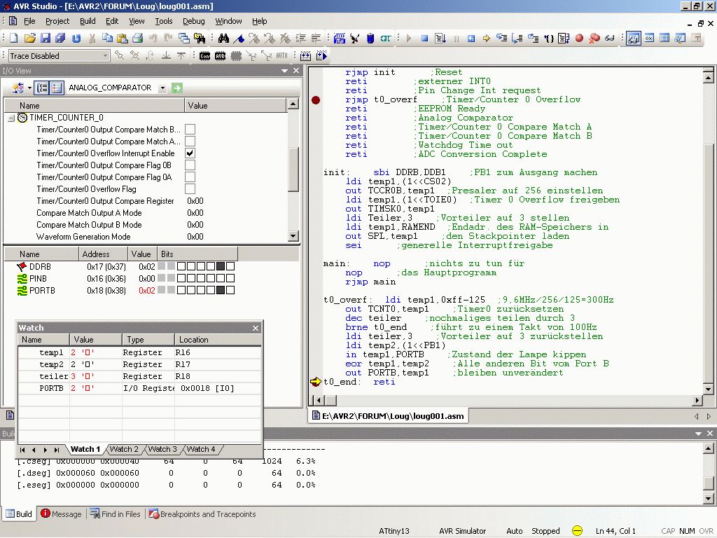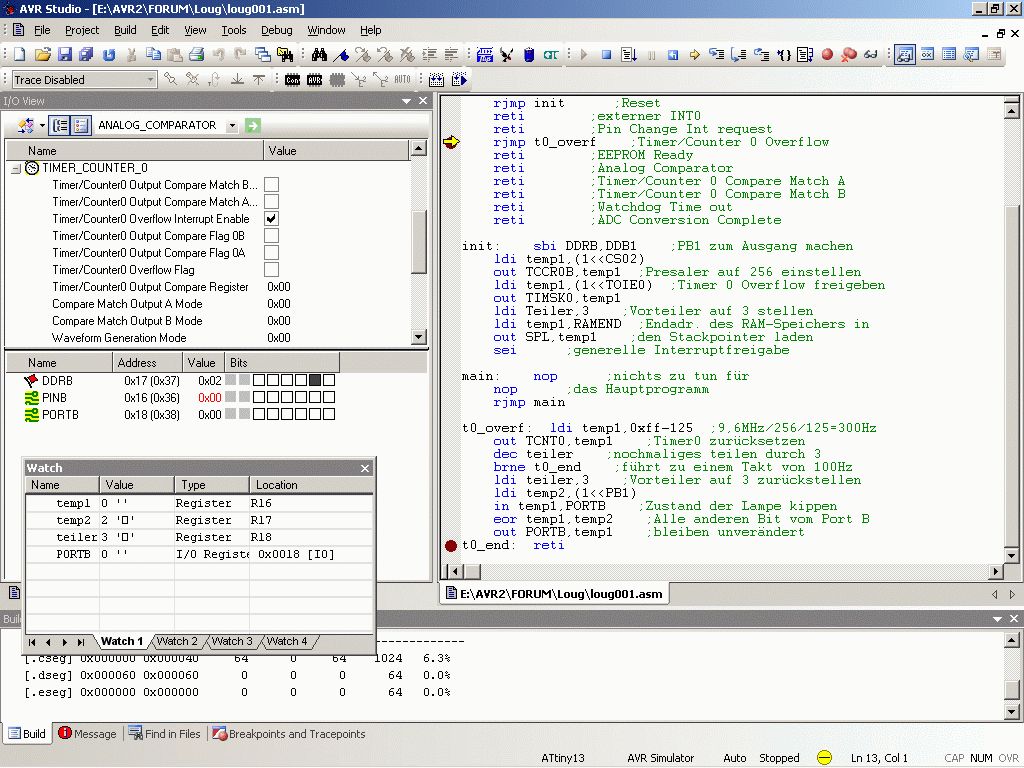 ldi temp1,(1<<TOIE0) ;Timer 0 Overflow freigeben