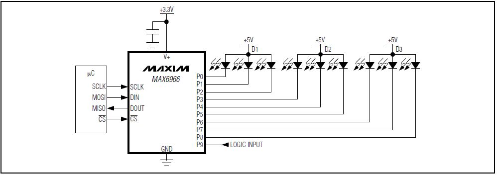Ich hab mal vor Jahren was mit einem MAXIM IC versucht. Der war mit SPI oder I2C. Der MAX6966/MAX6967 ist zum Beispiel ein 10-Port Constant-Current LED Drivers and I/O Expander with PWM Intensity Control via SPI. Da gibt es auch noch was mit I2C. Hab mal das Datasheet mit angehangen..