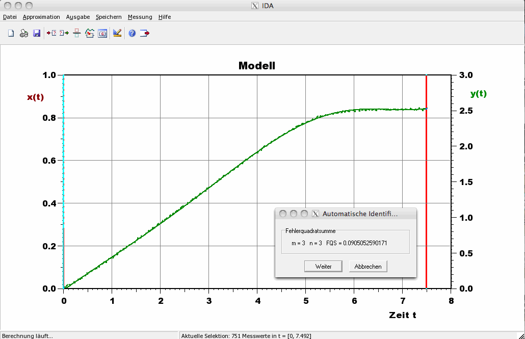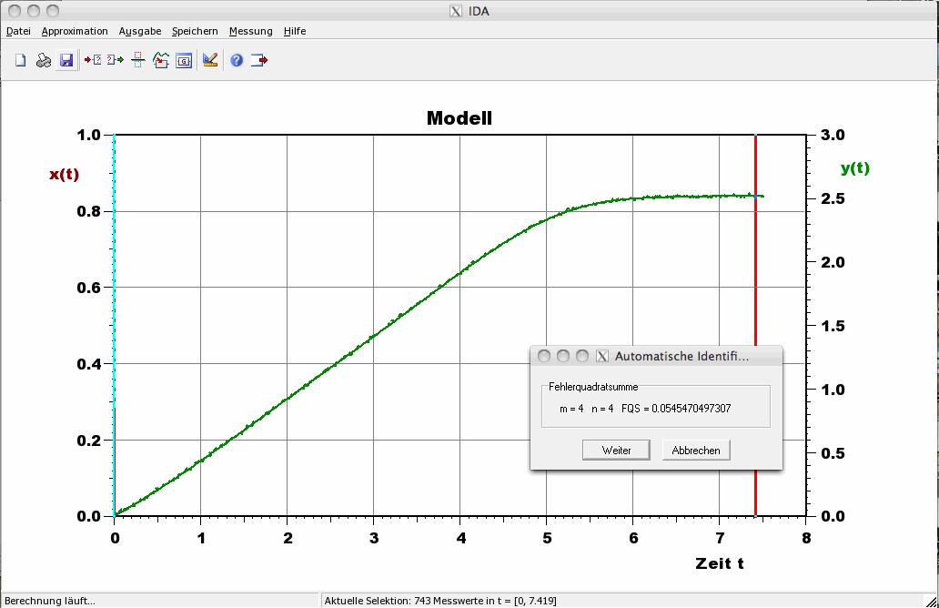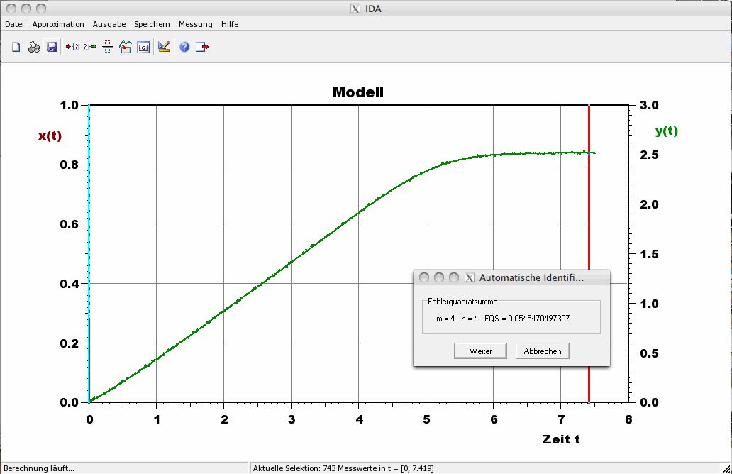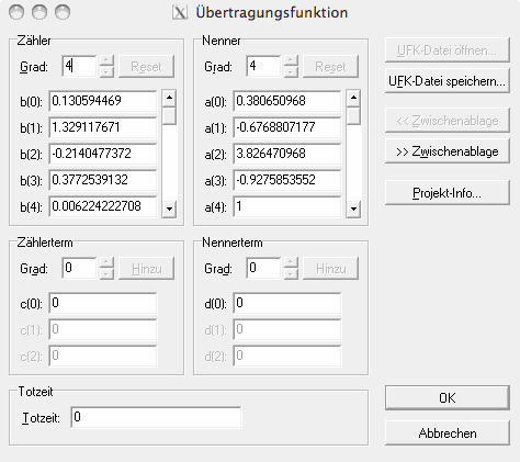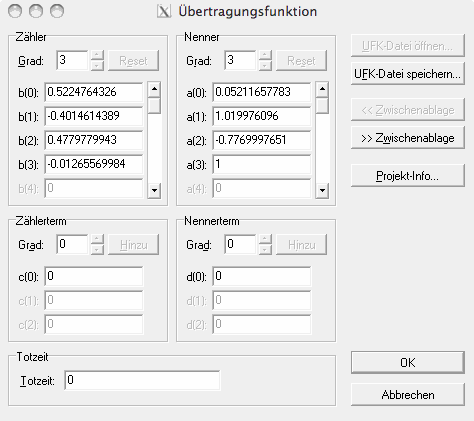 Hab das gerade eben in 5min mit Ida und Boris aus WinFact7 erschlagen. Hab hier aus dem Regelungstechnik-Praktikum noch eine Studentenversion rum fliegen... Der Sprung wurde erst durch 7021 geteilt und somit auf den Einheitssprung normiert. Die Sprungantwort wurde zunächst von ihrem Offset von 0,56 befreit. Herausgekommen ist eine Übertragungsfunktion mit N=4 und M=4, die von t=0sec ...7,5sec eine Fehlerquadratsumme von >0,06 aufweist. Es gab auch eine mit N=3 und M=3 mit >0,1. mfg mf