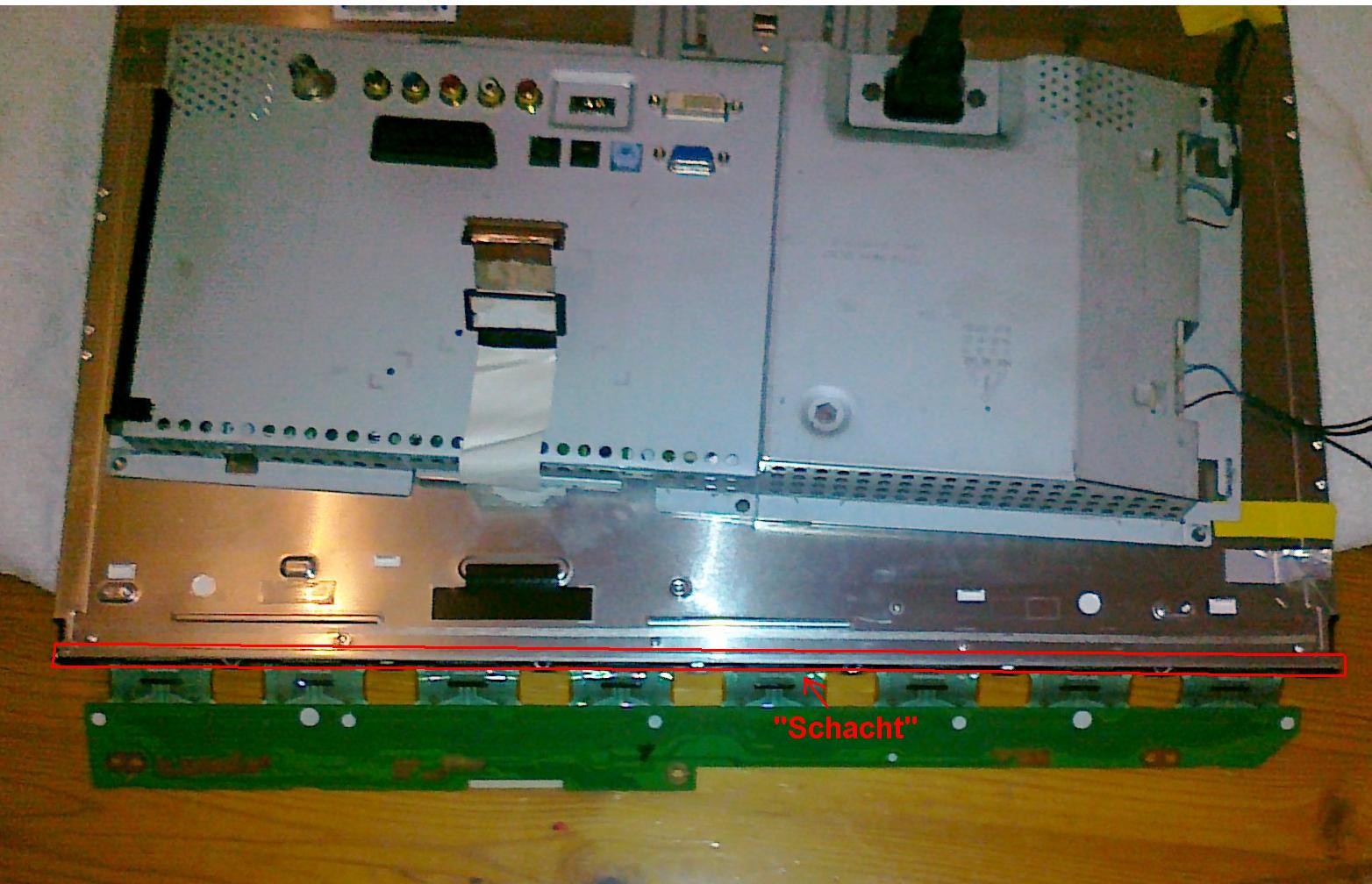 Hallo, ich habe einen TFT (Samsung Syncmaster T220 HD) geschenkt bekommen, der defekt ist. Oben und unten ist jeweils ein Paar CCFL Röhren. An dem oberen Paar war auf einer Seite die Isolierung nicht mehr in Ordnung. Dadurch kam es zum Funkenüberschlag zwischen zwei Anschlüßen. Die Überstromerkennung sprang an und schaltet den kompletten TFT aus. Ich habe das defekte Paar ausgebaut und die Anschlüße testweise durch Krokoklemmen ersetzt. Dann läuft er. Allerdings muss ich die Röhren auch wieder einbauen. Dazu habe ich versucht, an die kurzen Anschlüße ein Kabel zu löten und mit Schrumpfschlauch zu isolieren. Dann habe ich die Röhren mit den "neuen" Kabeln vorraus wieder durch den "Schacht" zwischen Gehäuse und der großen Plexiglaspatte geschoben. Der "Schacht" ist rechteckig und hat ne Kantenlänge von ca. 6mm x 4mm. Die Anschlüße sind wirklich sehr kurz, ca. 1mm. Auf dem Foto kann man es leider nicht so gut erkennen, da es eine Handycam ohne Makrofunktion ist. Die Anschlüße sind normalerweise länger, hier sind sie aber schon abgebrochen. Allerdings gab es wieder Überschläge, ich vermute folgende Probleme: Der Schrumpfschlauch scheint die Spannung nicht auszuhalten und es gibt Überschläge. Die Schrumpfschläuche über den Röhren waren auch miteinander verschmolzen. Ich habe normales Litzenkabel verwendet. Das Lötzinn zieht sich von der Lötstelle aus einige mm in das Kabel. Nachdem ich die Röhren durch den "Schacht" geschoben habe, muss ich die Kabel biegen, sonst passt die ganze Geschichte nicht ins Gehäuse. Die Kraft, mit der das Kabel verbiege, wirkt direkt auf die Lötstelle und sie bricht ab. Der Ehrgeiz hat mich gepackt und ich möchte das hinbekommen. Hat von euch jemand eine Idee, wie ich das wieder hinbekomme? Gruß Stefan