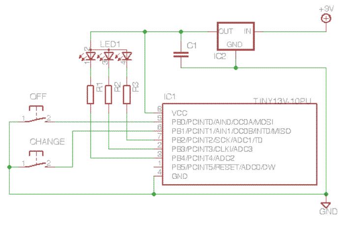 Hallo, mal davon abgesehen dass du mit dem Tiny13 eh nur 2 von 3 Chips ansteuern kannst....ist die Beschaltung auch noch Falsch. PWM-Ausgang sind die OC0A /OC0B - Pins! Ich würde an deiner Stelle einen größeren µC nehmen, da ein Anschluss eines externen LED-Treibers mit PWM-Funktion mangels fehlender I²C oder SPI-Schnittstelle nur sehr schwierig zu realisieren ist...