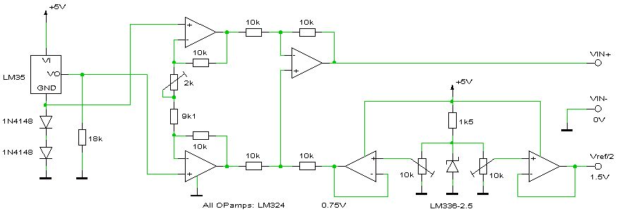 Für den Bereich -20°C bis 70°C habe ich das mal so wie im Anhang gemacht. Du kannst das natürlich auch völlig anders machen. Wichig ist nur, daß du der Ausgangsspannung einen Offset verpaßt, hier mit den beiden Dioden, wenn du auf eine negative Versorgungspannung verzichten willst.
