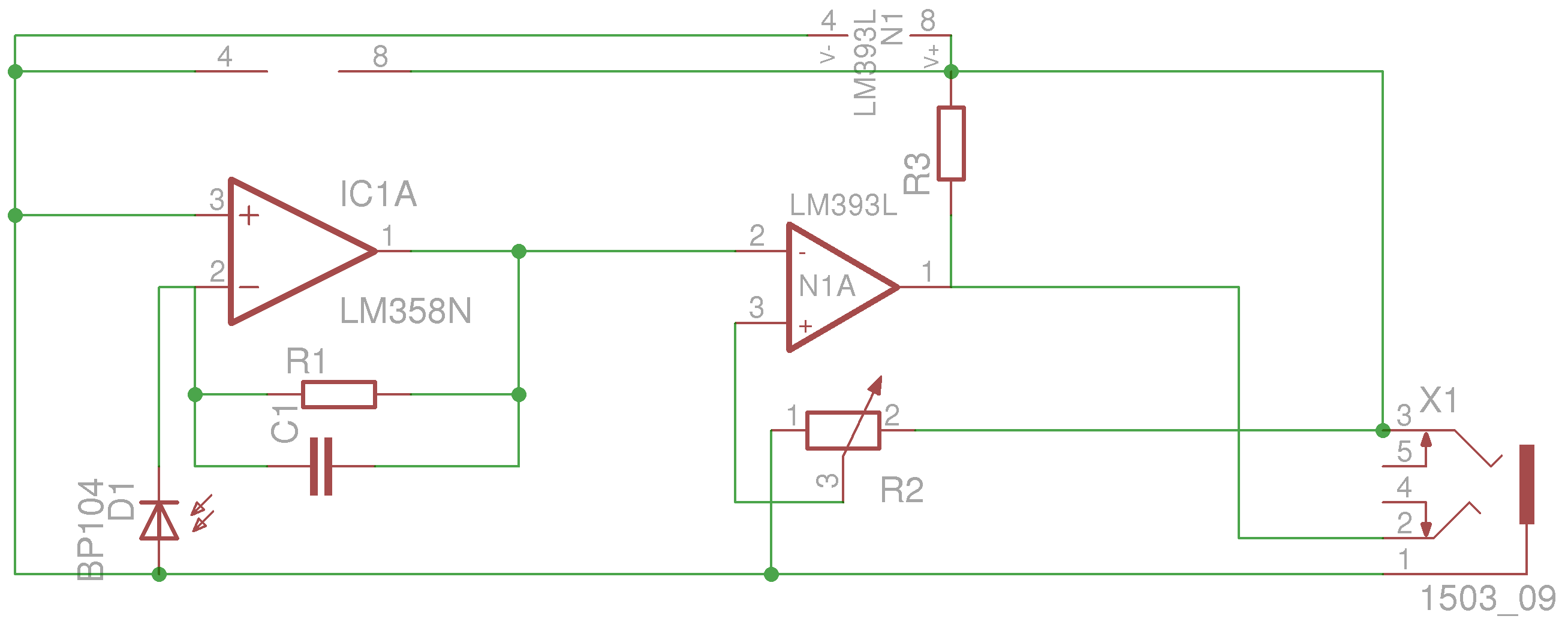 Hi Leute, ich habe ein paar Fragen zu einer Schaltung und würde mich über eure Anregungen und Kritik freuen. Das Problem ist, dass ich möglichst zeitnah eine Helligkeitsänderung an einem (wahrscheinlich TFT-)Bildschirm binär (im Grunde Schwarz/Weiß) erfassen möchte. Um dieses Problem anzugehen habe ich geplant, die abfallende Spannung an einer Photodiode mit einem OpAmp in einer TIA Schaltung nach http://www.mikrocontroller.net/articles/Lichtsensor_/_Helligkeitssensor zu verstärken. Darauf folgend möchte ich den Wert mit Hilfe eines Komparators auf HIGH/LOW wandeln. Um die Schaltschwelle zu regulieren verwende ich als Referenzspannung für den Komparator die Spannung aus einem Trimmer-Poti als Spannungsteiler. Weiterhin soll die Schaltung über ein Stereo-Klinke-Kabel an meine Hauptschaltung angeschlossen werden. Über dieses wird die Schaltung mit Spannung versorgt, an die Masse angeschlossen und das Signal wird über dieses Kabel hinaus geführt. In der Hauptschaltung soll das Signal von einem µC aufgenommen werden. Über konstruktive Kritik und Verbesserungsvorschläge würde ich mich sehr freuen. Insbesondere würde ich gerne wissen, ob die Schaltung das macht, was sie machen soll, oder ob ich da große Fehler drin hab. Weiterhin interessiert mich, ob der Anschluss der Schaltung an meine Hauptschaltung über das Klinke-Kabel Sinn ergibt, oder ob es damit Probleme geben wird. Vielen Dank im Voraus, Paul C
