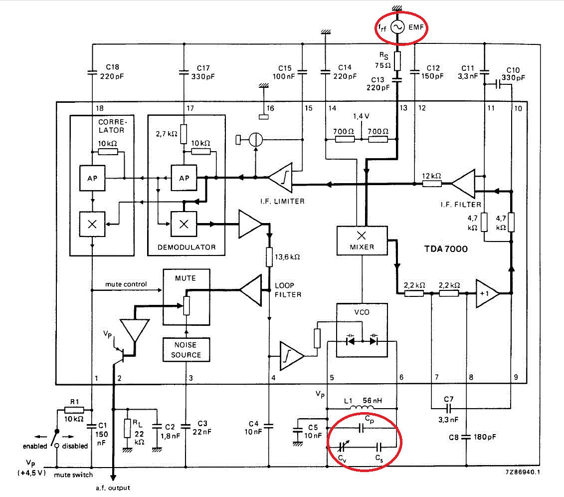 Moin ;) ich möchte ein Radio mit dem TDA 7000 bauen, aber ich verstehe hier auf dem Schaltplan 3 Symbole nicht was ist ganz oben an Pin 13 das EMF und warum stehen da keine Angaben bei den Kondensatoren unten (Cp, Cv, Cs), bzw was für welche müssen da reinkommen? der Plan ist von da: http://skory.gylcomp.hu/alkatresz/tda7000.pdf wäre nett wenn mir jemand das erklären könnt^^ mfg Dominik