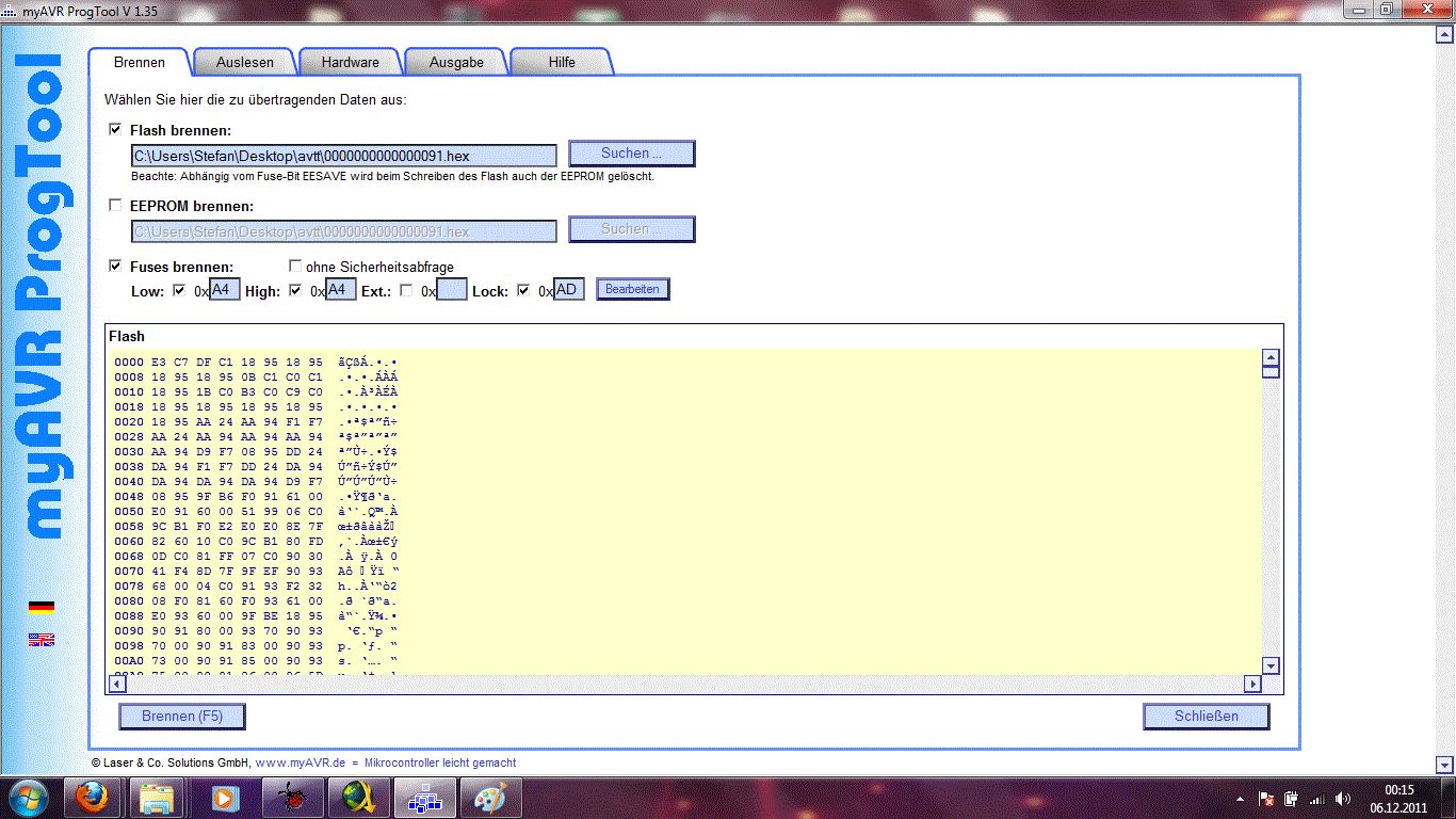 Das Bild fuses.jpg im Anhang des ersten posts ist die Vorgabe von DE. Diese Fuses sollte ich lt. entwickler der Schaltung setzen. Mein Problem ist es aber dass ich nicht weiß, wie sie in myAVR gesetzt gehören! Danke!