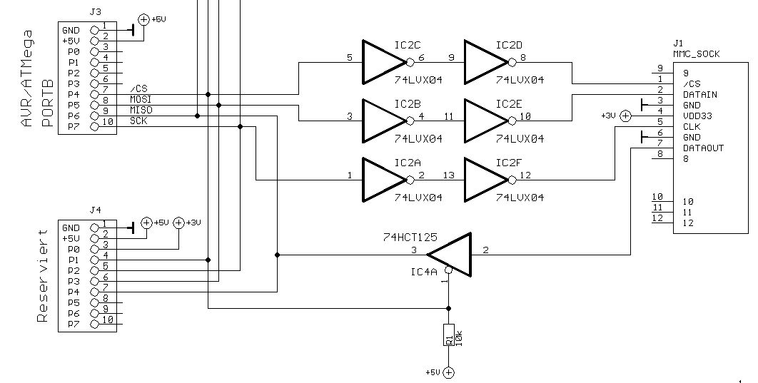 Hier mal eine einfachere ISP taugliche SD Karten Anbindung.