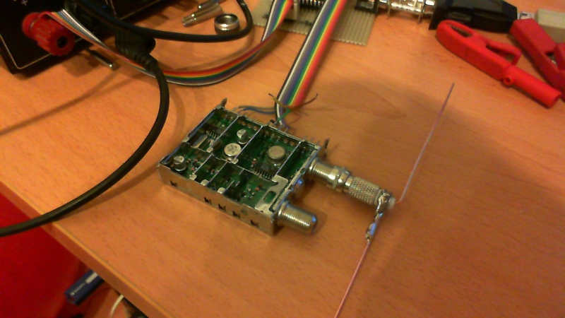 Guten Abend, seit ein paar Wochen bin ich dabei, einen ADS-B Tuner, nach dem Vorbild von Edward Cardew, zu bauen. http://www.lll.lu/~edward/edward/adsb/VerySimpleADSBreceiver.html Aktuell bin ich soweit, dass die Schaltung fertig aufgebaut ist und der Mikrocontroller (ATMega-48) programmiert ist. Einer Fehlererkennung in dieser Schaltung, ist nicht einfach, da an der seriellen Schnittstelle nur eine Ausgabe erfolgt, wenn der CRC des empfangenen Signals keinen Fehler ausspuckt. Ein sehr viel größeres Problem ist der Tuner, der schon seit längerem nicht mehr zu erhalten ist. Es handelt sich um einen Tuner BSKE5-101A vom Hersteller ALPS. Ersatzweise sind mir 2 analoge Tuner in die Hände gefallen. Ein Samsung-Tuner, über den recht wenig bekannt ist, da auf dem Gehäuse lediglich SAMSUNG steht. Der andere Tuner ist ein ALPS BSDE5-270A, der dem Orginaltuner schon recht ähnelt. Leider sind nirgends Datenblätter zu finden. Die I2C-Bus-Anschlüsse ließen sich aufgrund der verbauten ICs leicht herausfinden. Zu den verbauten ICs stehen Datenblätter zu Verfügung. Bei allen anderen Anschlüssen musste ich interpretieren, was wahrscheinlich sein könnte. Eine Modifizierung musste ich noch treffen, da der Tuner im Schaltplan keine Masse besitzt und daher ohne Stromversorgung wäre. Als Antenne hab ich mir erstmal einen Dipol zusammengeschustert. Strom an und schauen was passiert. Ohne Tuner schluckt die Schaltung 30mA. Schließe ich nun den Tuner an, zieht die Schaltung 300mA. Die Leistung wird vorwiegend an einem IC (vermutlich ein Mischer) umgesetzt. Eine verringerung der AGC, brachte kein Unterschied. Achso... An der seriellen Schnittstelle kommt nichts raus. Ich werde die Tage mal ein Oszilloskop an den IC2-Bus ranhängen, um zu schauen, ob da was kommt. Aber ich vermute außer dem Taktsignal wird da nichts kommen. Im Anhang werde ich zur Veranschaulichung noch ein paar Fotos zusenden. Gruß Sven