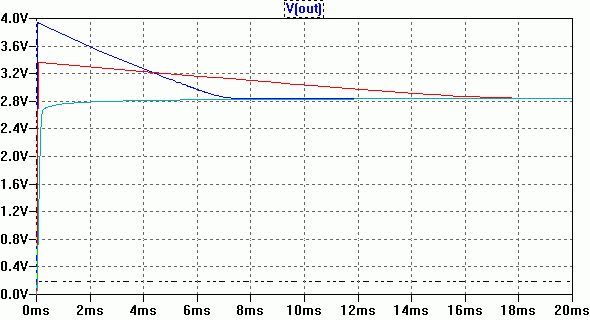 Hi, MaWin schrieb: > Noch einer mit overshoot, muss an Weihnachten liegen. > > Die 4.7pF im Datenblatt sollen so was verhindern, sollen störende > Kapazitäen überbuttern. Ohne die 4.7pF hab ich auch wesentlich mehr Ripple. Hatte die zuerst nicht drin, allerdings dann beim 'finalen' Aufbau schon. > Ganz allgemein sind die Bauteilwerte sehr extrem, > 4.7uH sagt, daß schon kleine Streuinduktivitäten releventen > Einfluss auf die Schaltung haben, Hmm, könnte es dann an der Wahl (wirkliche Wahl hatte ich nicht, hab genommen was in meiner Teilekiste war) der Induktivität liegen? Ich hatte nur eine 4.7uH Drossel in Widerstandsbauform. > 4p7 sagt daß schon kleine Kapazitäten Einfluss auf die Schaltung haben, > 1M sagt daß schon kleine Streukapazitäten Einfluss auf die Schaltung > haben, nicht ohne Grund schreibt der Hersteller, mit welchen Bauteilen > sie ihre Daten erreicht haben - die haben sicher länger nach den > passenden Bauteilen gesucht. Genau deswegen hab ich auch direkt mal versucht den Spannungsteiler niederohmiger zu machen. Hat mir den Ripple gesenkt, allerdings ist die Spannungsspitze noch immer da. > Es liegt also vermutlich an deinem Aufbau, im Datenblatt fehler leider > ein Layout. Zuerst hab ich das ganze auf einem Breadboard aufgebaut, allerdings hab ich mir jetzt schon eine 'schönere' Schaltung gelötet. Ich glaub ich werde mir mal ein paar PCB ätzen lassen und es damit probieren. > Ich hätte auch erst mal den Spannungsteiler niederohmiger gemacht, aber > wenn das so gar nichts bringt, liegt es vielleicht an der GND Verbindung > (viel Strom durch den Schalttransistor beim Aufladen des Ausgangselkos > macht viel Spannungsabfall am GND Pin und verschiebt damit den Nullpunkt > des Feedback Netzwerks). Also am Ausgang ist ein Kerko und kein Elko (im Datenblatt wird extra low esr gefordert). Ich habe jetzt mal testweise noch einen 100uF Elko parallel dazugehängt. -> Die Spitze wird fast gleich hoch, dauert aber wesentlich länger an. Hat jemand sonst vielleicht eine gute Alternative zum lt1615? Ich würde einfach gerne idiotensicher (möchte nichts kaputt machen) aus 1 oder 2 AA 3.3V machen. Den lt1615 habe ich nur genommen weil ich ein paar spottbillig (<50ct) gekriegt habe und er zumindest in der 1M/604k Variante quasi null Ruhestrom hat. mfg Philip