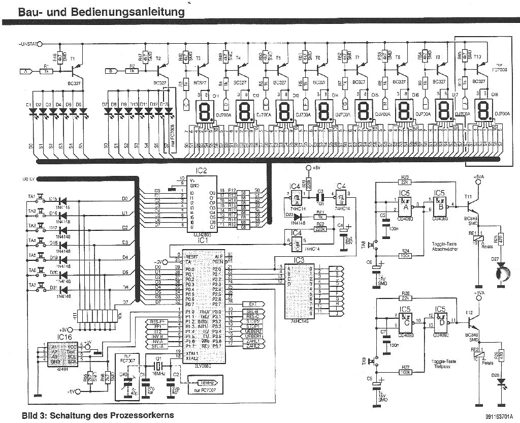 Hi, habe kürzlich eine 12-stellige 7 Segmentanzeige entwickelt. Die Anzeige emuliert die MAX7219 Bausteine, da diese Bausteine selbst recht teuer sind. Mein Design arbeitet mit dem AT90S1200 und 3 x 74HC374 Bausteinen und 4 Transistoren. Interessenten setzen sich mit mir per email in Verbindung. mfg Wolli_r