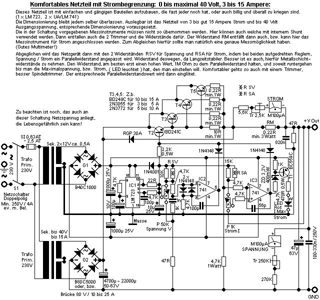 Hallo zusammen, ich möchte bei einem Netzteil drei fixe Stromwerte vorgeben mit denen ich arbeiten möchte. Derzeit stelle ich den Storm über ein 1kOhm Poti per Hand. Da mir das mit den Digital Poti IC´s alles zu aufwendig ist(Ansteuerung) möchte ich einfach über drei Digitale ausgänge einer Steuerung die ich zum Simulieren verwende machen. 33% ,66%, 100%. Hat jemand eine Idee? Ich habe den Schaltplan des Netzteils im Anhang. Auch denkbar wäre natürlich am Operationsverstärker direkt die entsprechenden Spannungswerte anzulegen. Erstetzt werden soll das "P 1K Strom I" Poti. Aufgebaut soll das Netzteil mit den BC249C also bis 15 A werden! Wäre dankbar für jeden Tip! Gruß RH