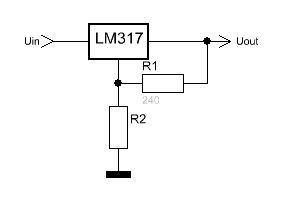 ja ich nehme den lm317 mit einem R 320ohm von gnd nach vout wo noch 240 dran steht , und ein R 520 zwischen gnd, und dann habe ich meine 3.1071428571 V .