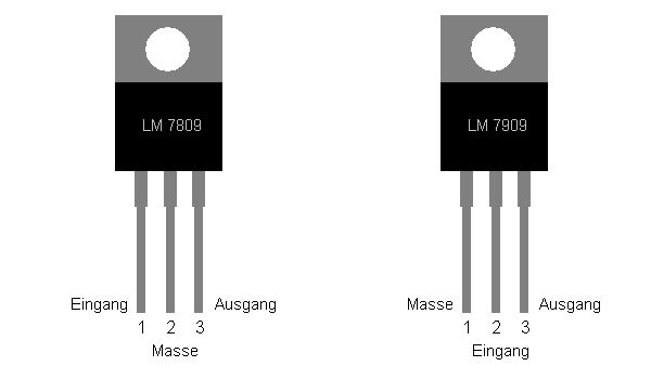 Ja habe mir die Datenblätter angeschaut wenn ich von vorne auf das Bauteil gucke habe ich beim 7805 Output dann Ground und rechts Input und beim 7905 Ground Input und rechts Output.