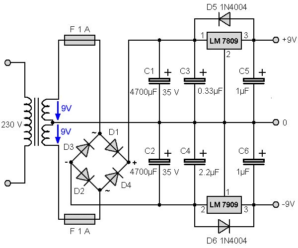 Also lediglich einen Kondensator mehr am Ausgang des 7905 und 2 1n4007 Parllel zu den beiden Spannungsreglern und es sollte einwandfrei funktionieren. Hab ich das richtig aufgefasst ?