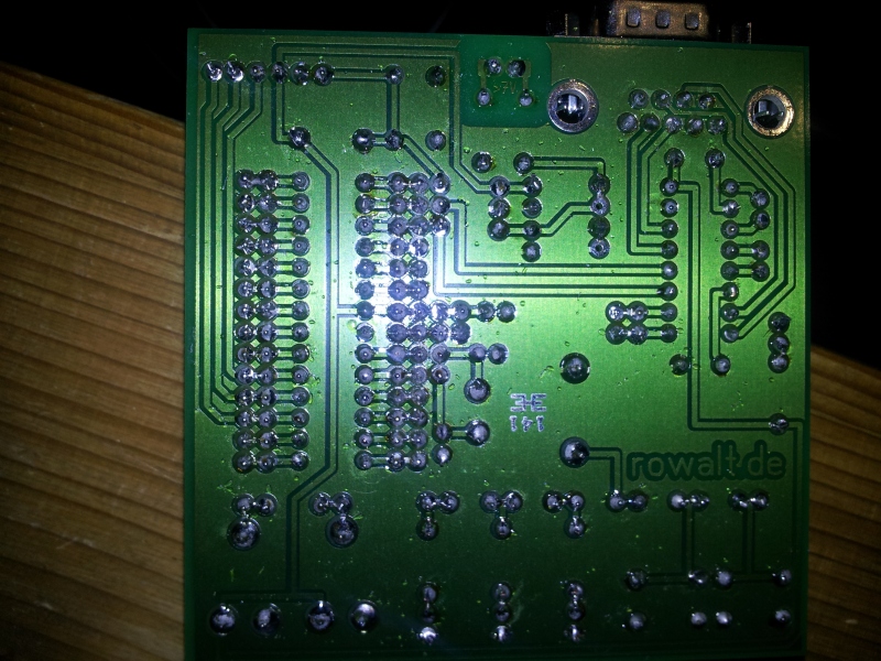 Hallo Krapao! Vielen Dank für Deine Hilfe! Ich habe Dir mal die Rückseite abfotografiert. Die Version in voller Größe ist das zweite Bild (Achtung). Der Schaltplan befindet sich auf: http://www.rowalt.de/mc/avr/avrbuch/AvrBoard.pdf Falsch eingebaut habe ich ihn nicht, die "Nase" zeigt in zur RS-232. Durchgemessen, wie Du vorgeschalgen hasten, habe ich ihn auch: Vcc und GND haben 3,5k Ohm. Die anderen Pins sind auch alle hochohmig. Spannungsversorgung mache ich mit einem Netzteil bei 7V. Grüße