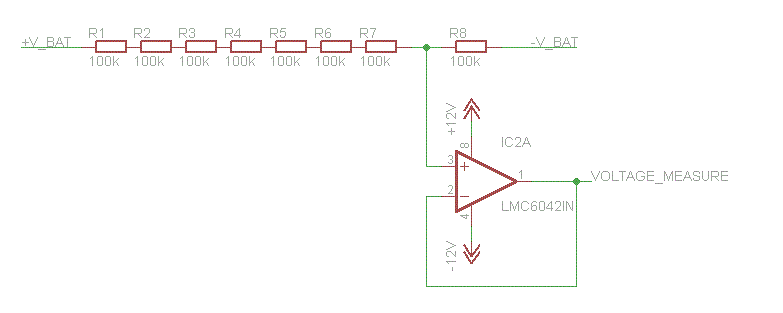 Hallo, ich hab mal eine Frage bezüglich der Schaltung im Anhang. Ich möchte eine Batteriespannung von 36V mit einem µC messen. Dafür benutze ich einen Ohmschen Teiler der das Übersetzungsverhältnis 0,125 besitzt (Annahme maximal 40V Batteriespannung) Also, da ich einen recht hochohmigen Teiler angedacht hab, dachte ich, dass es vielleicht Schwierigkeiten mit dem µC-Eingang geben könnte. Kann ich das Problem so umgehen (wie im Anhang). Durch den Impedanzwandler, sollte doch mein Signal nahe am zu messenden Signal bleiben, oder irre ich mich in dem Punkt? Die Versorgung vom OP mit +12V/-12V ist kein Problem, da diese Spannung schon für einen LEM-Wandler vorhanden sind. Der µC ist ein AT90CAN128. Freu mich auf eure Antworten. Schöne Grüße Kai