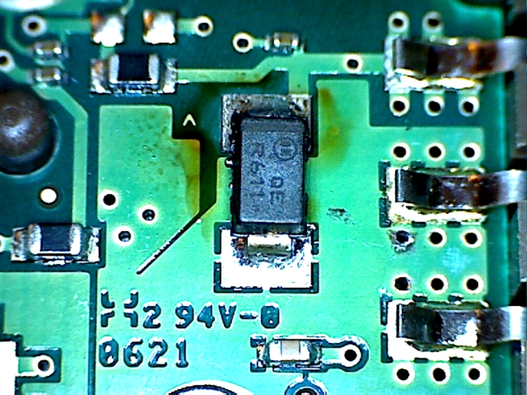 müsste ne ordinäre diode sein, die sich bei der überspannung selber geopfert hat. guck mla, ob du in der nähe noch ne sicherung findest. bevor du die platte wegschmeisst, löte die diode aus und probiere nochmal.
