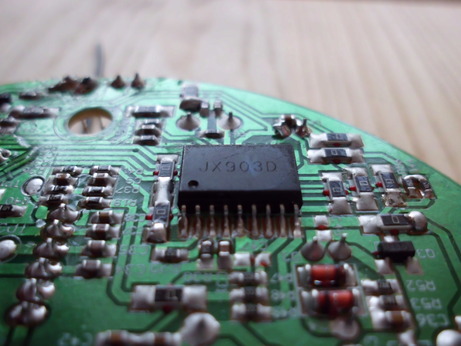 Tach zusammen! Ich suche ein Datenblatt vom SMD-IC auf Bild 1. Das IC trägt die Aufschrift "JX903D" und ist auf der Senderplatine eines Funkkopfhörers verbaut. Meine Vermutung ist, dass das IC aus dem analogen Stereosignal irgendein Datenpaket macht, denn die Anschlüsse des HF-Moduls (Bestückungsseite) sind u.A. mit CLK und DATA benannt. Dass das ein einfacher ADC ist, schließe ich aus, denn es muss ja noch zusätzlich eine Information übermittelt werden, ob gerade für den linken oder rechten Ohrhörer gesendet wird. Was mich auch wundert ist, dass es keine (für mich erkennbare) Verzögerung des gesendeten Audiosignals gibt. Ein weiterer Punkt ist, dass das Signal verrauscht, wenn man sich mit dem Kopfhörer außerhalb der Reichweite des Senders aufhält. Das spricht eigentlich gegen ein digitales Signal. Naja, vielleicht weiß ja jemand was das IC macht. Die Bilder von Bestückungs- und Lötseite habe ich zur Orientierung mal dazugepackt. PS: Ja... Google & Co. habe ich natürlich schon konsultiert.