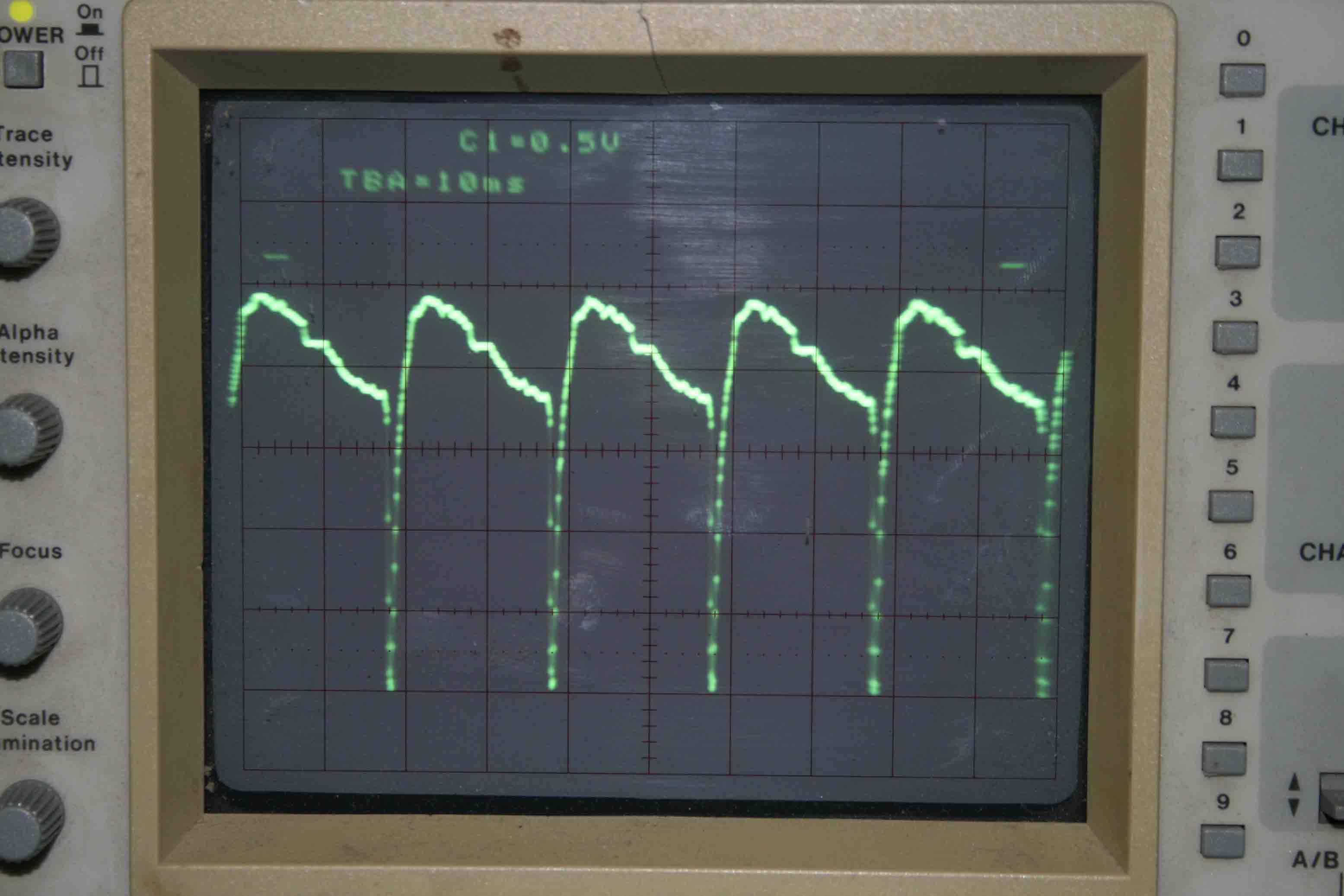 Hm sieht für meine Begriffe etwas eigenartig aus. Wo liegt da die Nulllinie - in der Mitte ? Und wie sieht deine Messschaltung aus ? Und was genau ist das für ein Gleichrichter ? Einfach mal paar Infos....