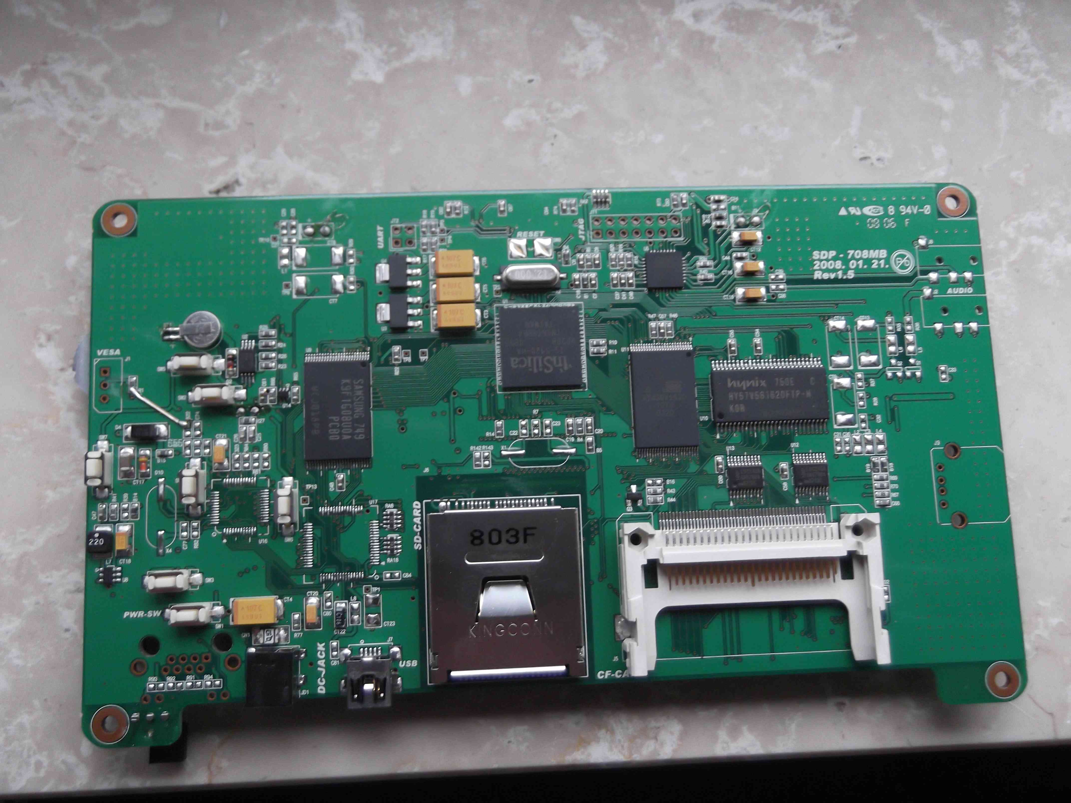 Hallo, der SD-Card-Slot sieht mir eher nach Compact-Flash aus... Wie kommst Du auf eine Verbindung zwischen Vesa und Video (BAS/FBAS)? J1 am Vesa Anschluß deutet für mich eher auf einen Jumper hin, der die Mitte bei Bedarf mit GND verbindet. Wozu ein Video-Out??? Meinst Du einen Video-In? Gruß aus Berlin Michael