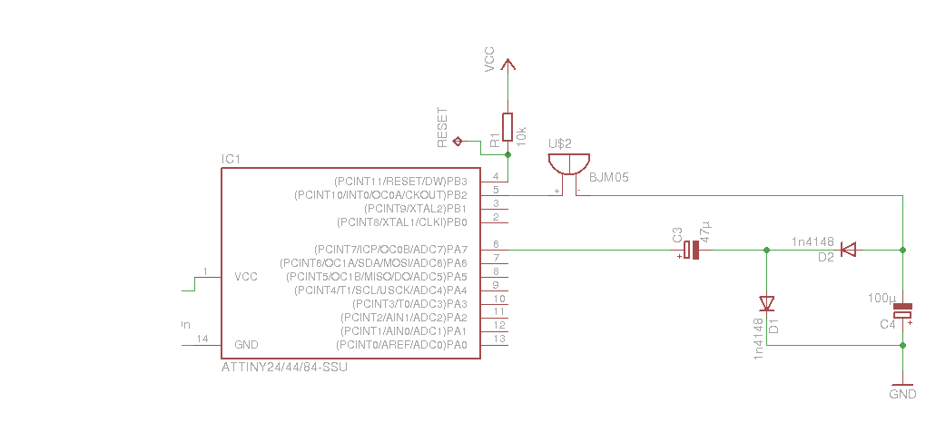 Hallo, ich wollte mal wissen ob ich mit der Beschaltung soweit richtig liege? Ich möchte mit meinen AVR eine negative Spannung erzeugen die zusammen mit der positiven den Buzzer treiben soll. Geht das so und reichen die Elkos für 20mA aus?