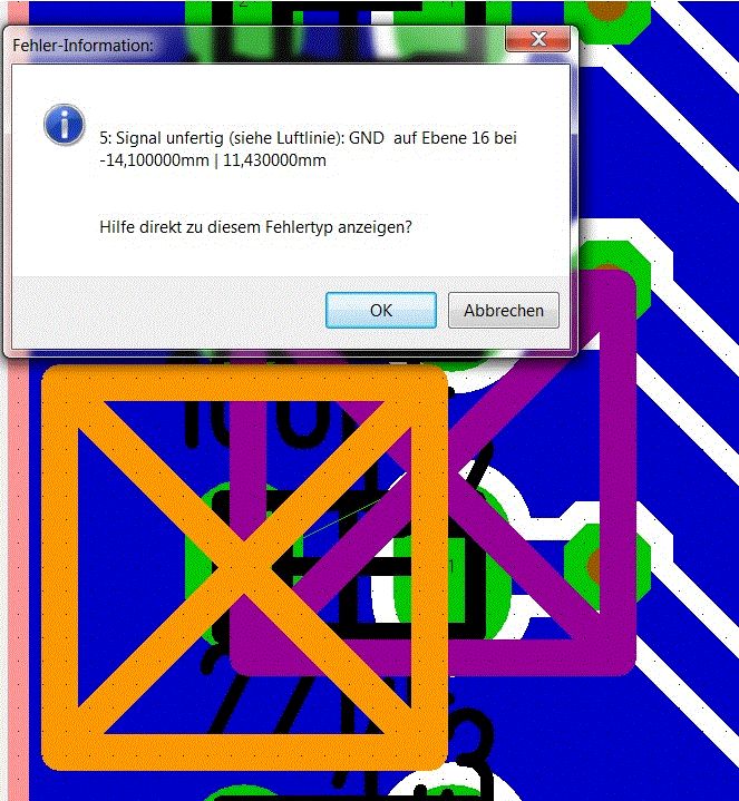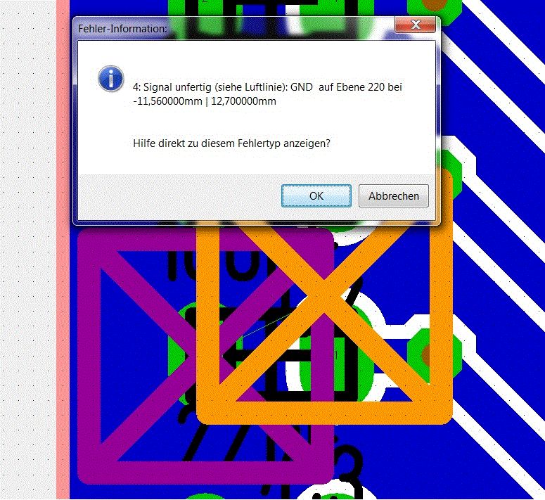 Hallo Vielen dank für die info das "unnütze Signale löschen" hat es gebracht. Nach dem Reo habe ich dann in der Platinenansicht eine Luftlinie entdeckt die ich danach gelöscht habe und jetzt gibt es keine Probleme mehr. Warum da eine Luftlinie drin war oder nach dem Reo entstanden ist weiß ich nicht jetzt sieht aber alles gut aus. Vielen dank für den tipp