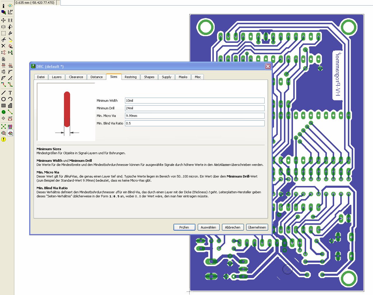 2. Shot sind die Design-Rules, dort kannst du noch einige