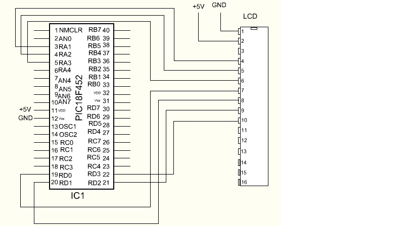 Kann ich so wie im Bild den Pic18F452 an ein LCD Modul anschließen Ich mein nur de Verbindung zwischen Pic und LCD LCD https://www.distrelec.at/ishop/Datasheets/opEA2x16_data_d.pdf Hoffe ihr könnt mir helfen mfg patzi