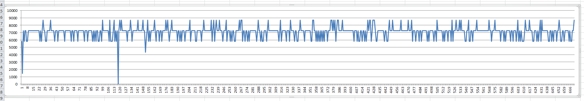 Hallo liebe uC-Gemeinde, ich hab mir vor einiger Zeit einen Widerstandsmesser für den PC gebastelt. Ein NE555 gibt mir über die on- und off-Zeiten zwei Widerstände aus. Das PWM-Signal lese ich mit der RS232 Schnittstelle aus und verarbeite die Daten mit LabView. Allerdings hat dieses Signal ein ziemlich krasses Rauschen. Es treten Toleranzen bis 5% auf, was mich bis jetzt nicht gestört hat, da ich eher relative als absolute Werte benötigt hab. Jetzt brauch ich aber gute Widerstandswerte, da ich die Position einer Joystickachse (mit eingebauten Poti) auslesen will. Ich hab im Anhang das "digitale Rauschen" in Excel geplottet. Auf der x-Achse sind die Messpunkte und auf der y-Achse der Widerstand (aus den on-/off-Zeiten errechnet) abgebildet. Weiß jemand wie dieses Rauschen zustande kommt? Vielleicht sogar wie man es beseitigen / reduzieren kann? Ich weiß schon, dass ich mir die Herummurxerei mit einem uC oder einem AD-Wandler sparen könnte, aber dazu fehlt mir die Kenntnis in einer uC-Sprache. Außerdem will ich es mit den Mitteln schaffen, die mir zur Verfügung stehen. Freundliche Grüße RaZu