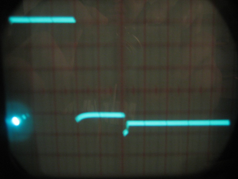 :-) Hab ich befürchtet. Das dauert aber etwas... Vorher versuche ich es mal zu beschreiben. Glaube nicht, daß es an der Software liegt. Also: Mein PIC 18F2620 sendet am CCP Ausgang immer den gleichen Impuls mit 1,5ms Länge und 20ms Abstand. Darauf folgt 1/4 4011N NAND Gatter. Das wird immer für 4ms auf Durchlaß geschaltet. Darauf folgt ein 1k Widerstand, der auf die Basis eines BC327 geht. Der Transistor schaltet dann ganz einfach 5V auf den Signaleingang des Servos. Am Signaleingang hängt ein 10k Widerstand gegen GND, der den Pegel runterziehen soll, wenn kein Signal anliegt. Versorgt wird das Ganze über ein Laptop Netzteil 14V, auf einen 7805, der normal verschaltet ist mit 470uF am Eingang und 2x100nF am Ausgang. Mehr ist da nicht. Und ich weiß nicht mehr was ich noch testen soll. Die Servos, die nicht gehen laufen an einem Servotester einwandfrei. Andere Servos haben dieses Verhalten nicht und keinen Spannungseinbruch und eine saubere Kurve/Impulse. Jetzt versuch ich mal Fotos vom Oszi zu machen... Bis dann. Thomas