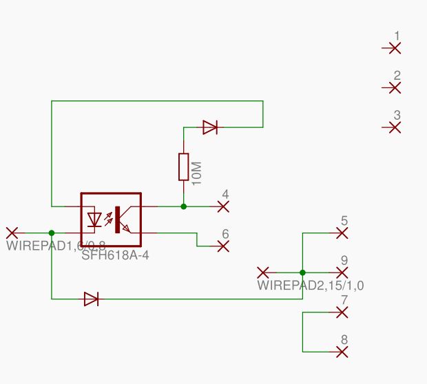 Moin, ich habe mal den Schaltplan eingestellt. Dazu muss ich allerdings noch ein wenig sagen: der Optokoppler im Schaltplan wird ersetzt durch einen PC81510NSZ0F. Die Platine wird an einen Sub-D9 Stecker verlötet (deshalb die einzelnen Pads). Danke für Eure Hilfe. Gruß