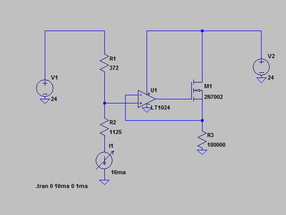 Hey Leute Ich habe folgendes Problem. Ich möchte ein Drehspulinstrument das für seinen Vollausschlag ca. 70uA benötigt über eine veränderbare Stromsenke aussteuern. Diese zieht bei voller Aussteuerung 16mA. Mein erster Gedanke war, einfach einen entsprechend großen Widerstand dem Drehspulinstrument parallel schalten, dass eben die 70uA über das Instrument und die restlichen 15,93mA über den Widerstand fließen. Hat nicht schlecht funktioniert, allerdings werde ich da durch die Bauteiltoleranzen und Temperaturdrifts sofort ungenau. Nach kurzer Recherche bin ich dann auf die Stromspiegel OP-Verstärker Schaltung gestoßen. (Bild liegt im Anhang, Bauteile sind willkürlich aus der Bibliothek entnommen) Diese hat sich allerdings relativ schnell als nutzlos erwiesen, da ich sie mit der StromSENKE nicht entsprechend steuern kann. Ich muss genau diese Stromsenke zur Ansteuerung verwenden, kann bei dieser nichts drehen. Habt ihr eine Ahnung wie ich das sonst realisieren könnte? Gruß Matthias