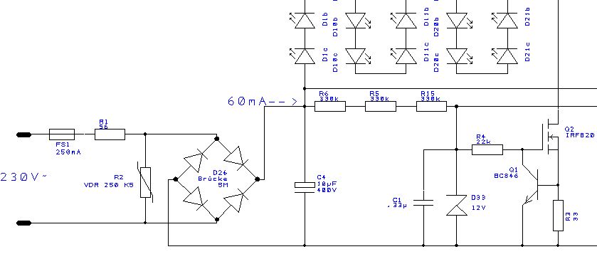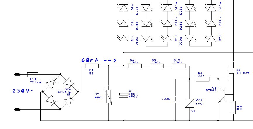 Wieso geht das Ganze nicht gleich als reines strombegrenzendes Kondensatornetzteil ohne den FET usw.? Zu irgendwas müssen die 50 Hz doch gut sein ...