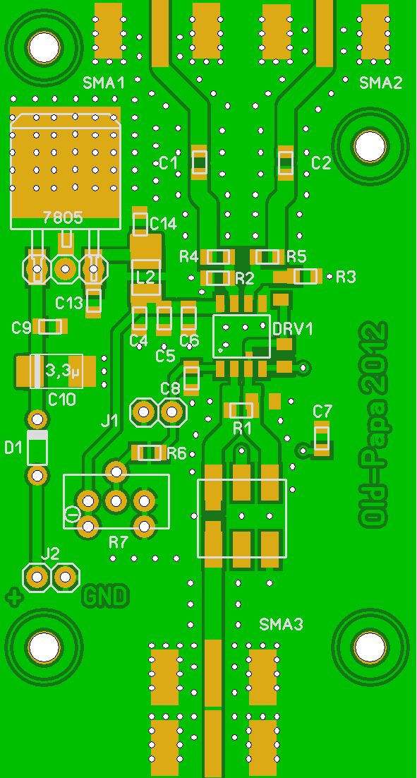 Hallo Männers, eins fehlt ja noch zum genauen(?) Kalibrieren, ein Fast-Schmitttrigger! Geschrieben hatte ich ja davon schon, ein paar Entwürfe dazu auch gezeigt, die gehen auf einen Vorschlag hier aus dem Forum zurück. Hier nun die letzte Version der Platine. Für 4 Stück habe ich Teile da, könnte aber auch noch einige Platinen mehr machen lassen. Bausätze oder gar bestückte gebe ich aber nur die drei Überzähligen ab, weitere müssten dann selber zusammengestoppelt werden. Bis auf den ECL-Chip ist alles Standardgedöhns. Den ECL bekommt man bei Farnell und Digikey, vielleicht auch woanders. Im Schaltplan (PDF) sieht man, dass ich das Dingens für variable Bestückung vorgesehen habe, die allerletzte Version nochmal etwas modifiziert. man könnte auch einen Micrel zur Spannungsversorgung einsetzen, doch der scheint hier hart an der Grenze. Er verträgt ja nur max. 6V und soll daraus die 5V für die Schaltung basteln, da bleibt nicht viel..... Kosten: Platine bei 4 Stück rund 20,-, bei 10 Stück nur noch rund 12,- (mit Lötstopp, ohne Bestückungsdruck) Der Chip kostet so etwa 4 bis 6,-, die SMA-Buchsen je ca. 5 bis 9,- und der Rest ist Pfennigkram. Nur der optional einsetzbare HF-Übertrager ist wieder teuer, habe auch keine Quelle dafür. Ich werde eh nur V2 aufbauen, die sollte für unsere Zwecke reichen. Die drei überzähligen Platinen muss ich mal ausrechnen, ich würde Platine, ECL-Chip und vielleicht das Hühnerfutter beilegen. Angesteuert wird bei mir von einem Rubidiumnormal mit 10MHz, jede andere stabile 10MHz-Quelle sollte auch brauchbar sein. Also, wenn Interesse an der Platine (oder den 3 Überzähligen) besteht bitte mal Laut geben. Die Platinen werde ich spätestens Ende nächste Woche in Auftrag geben. Gruß Old-Papa
