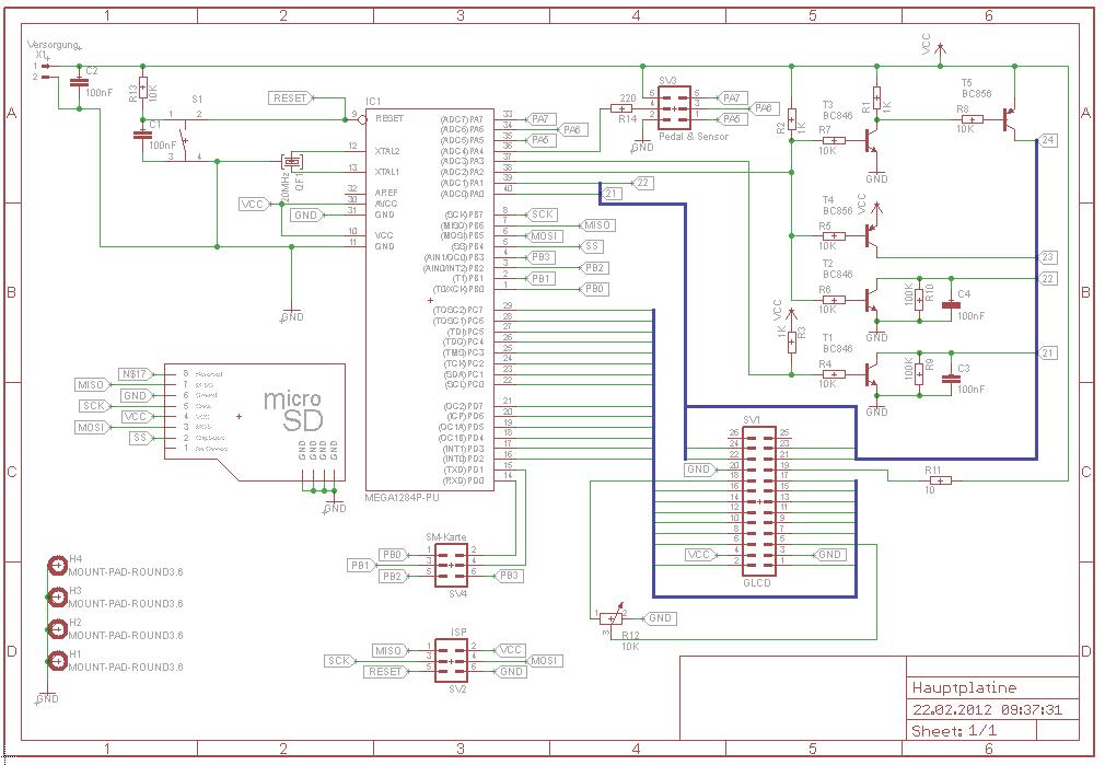 Hallo, ich habe mit dem easyavr6 eine Touchscreenanwendung programmiert.(ATmega1284PU) Um ein eigenständiges Gerät zu haben, fertigte ich eine Platine. Die Schaltkreise dafür, habe ich vom Entwicklungsboard 1:1 übernommen. Trotzdem funktioniert das Touch Panel nicht (Display funktioniert einwandfrei) Als Touchpanel-Controller habe ich eine Transistorschaltung (vom Dev.board kopiert) angebracht. Schon die Spannungsverhältnisse am Eingangspin des uC sind beim unberührten Touchscreen anders. Dev.board.: PinA0 -> Pinspannung gleich Betriebsspannung Platine: PinA0 -> Pinspannung ist gleich Betriebsspannung minus ca.1,5 Wo könnte hier der Fehler liegen? Viele Grüße Roland