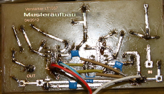 Hallo, Hier der “Prototyp” des Verstärkers. Dieser ist aufgebaut und dient dem austesten, der einzelnen Komponenten. Warum dies? Wir haben hier zwar einige Messmittel und wir haben die Ergebnisse von SPICE, aber die echten Werte, erhalten wir doch erst im Vergleich, will sagen: Die absoluten Werte ergeben sich erst aus der Zusammenfassung der praktisch eingesetzten Bauelemente, in den echten Umgebungen, mit der echten Einbausituation. An dieser praktisch späteren Einbaustelle nutzen wir jetzt diese Platine, bauen diese eins dieser Gehäuse ein, mit Abschirmung, mit definierten Masseleitungen, Massepunkten und (abweichend vom späteren Einsatz) zwei Akkupacks, und zwar Bleiakkus. Dies ist keine Absage an SPICE, vornehmlich LTSPICE, sondern die Aussage, dass die Daten die ich in SPICE vorliegen habe, sich nicht in jedem Fall mit den Bauelemente deckt die ich anwende. Ich versuche mit den beigefügten Fotos das zu erklären. Zuerst bitte ich das „abenteuerliche“ Aussehen der Leiterplatte zu entschuldigen, diese hat aber schon ein hartes Laborleben hinter sich, an ihr wurden die Widerstände und die Kondensatoren ausgemessen. Dies geschah in Vergleichsmessungen mit einem Rauschgenerator der sich bei weißem Rauschen bis 1nV dämpfen lies und immer wiederholtem ein- und auslöten (Prototyp_Rueckseite_1_1440.jpg). Das Bild (Masse_Gehaeuse_1_1439.jpg) soll die Masseverhältnisse zeigen. Die Leiterplatte ist mechanisch und elektrisch isoliert an dem Chassis montiert, die Massekondensatoren sind rückseitig direkt von den PINs der IC zum Massepunkt R3 geführt. Dort finden sich auch die Versorgungsmasse und die Masse der Abschirmung. Zum Abschirmgehäuse das Bild (Abschirmung_1_1448.jpg), hier ist auch zu sehen dass die Leiterplatte mit einer stabilen Pappe isoliert in das Abschirmungsgehäuse aus Weißblech eingesetzt ist. Um die kapazitiven Einflüsse zu eleminieren ist das Gehäuse an einem Punkt mit dem zentralen Massepunkt verbunden. Bitte dazu auch den Beitrag vom 28.04.2012 10:28 anschauen, dort sind diese unterschiedlichen Potentiale auch erst am Messeingang zusammengeführt. Viele Grüße Ralf