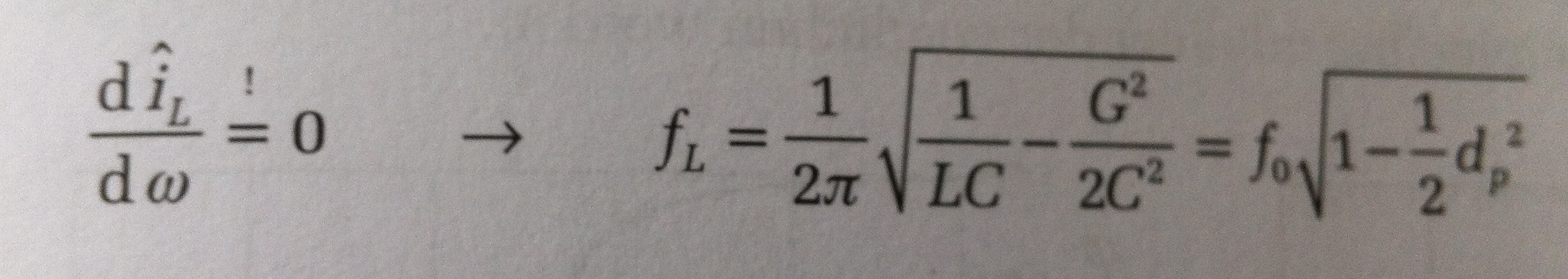 Wobei sich diese Forderung aus der Definition der Resonanzfrequenz ergibt. Bei Resonanz ist die Energie die zwischen C und L pendelt maximal und die 1. Ableitung damit 0.
