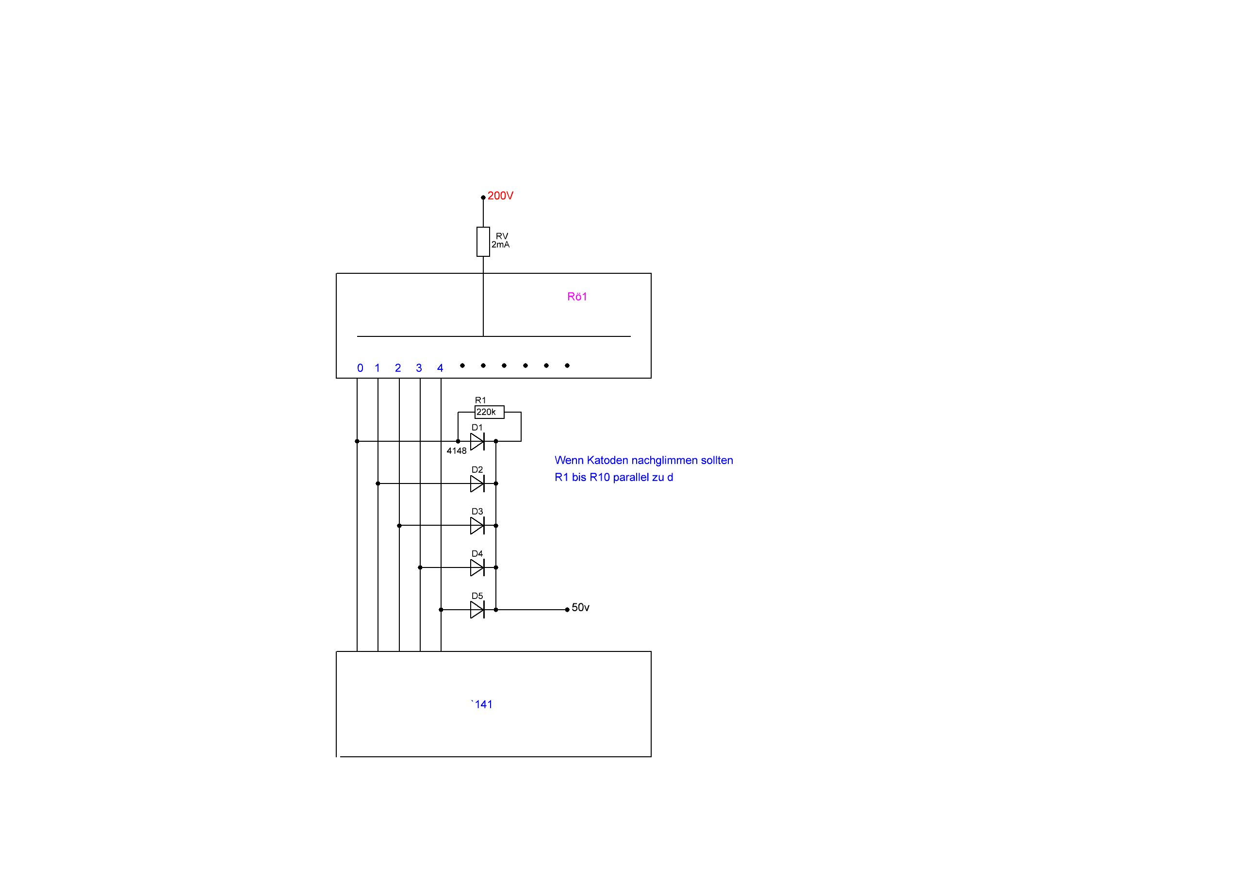 sollten katoden mitglimmen dann r parallel zur diode.