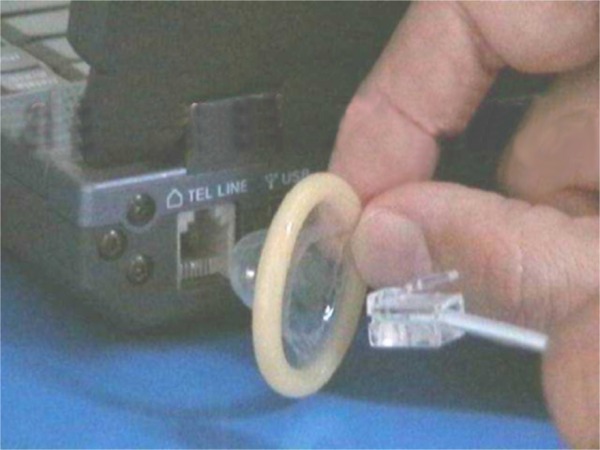 Na fuer den Fall der Faelle reicht es auch, den Stecker nicht erst einzustecken -- immernoch der beste Schutz. Ein Kondom koennte auch perforiert sein oder unter den mechanischen Belastungen nachgeben.