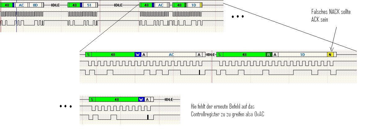 Dann hatte ich dich falsch verstanden. Ic hatte mit dem selben Controller hier auf Arbeit diese Problem nicht beim I2C von daher kann ich dir dazu nichts sagen. (dumme Frage hast du ihn nach dem Lesen wieder in den Schreibmodus gebracht?)
