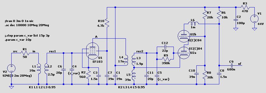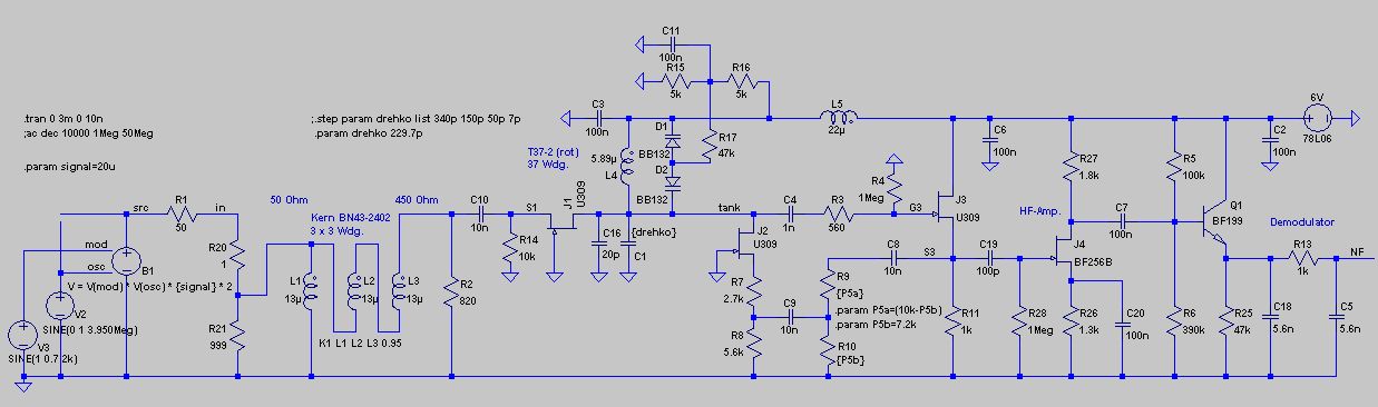 Ein LNA mit 40 dB Verstärkung davor, lose an den Schwingkreis gekoppelt,
