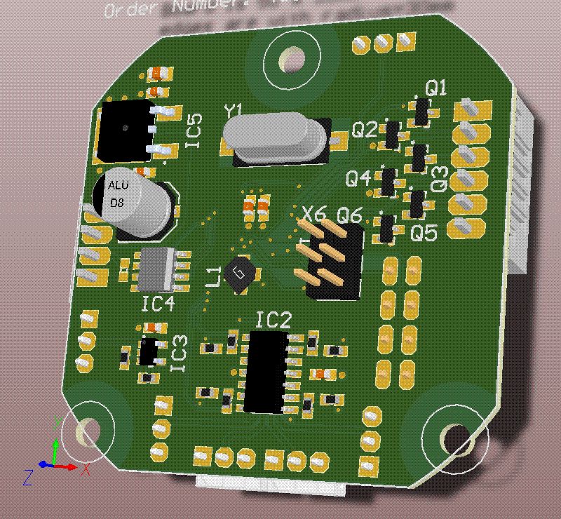 Anbei meine neueste Platine. Sie hat die Maße 50 x 50 und ist mit einem Radius 28mm ihrer Ecken beraubt (damit sie in eine UP Dose passt.) Drauf ist ein Atmega 168 der über einen OPV vorbehandelte Analogwerte bekommt und außerdem ist ein RS485 Busskoppler auf der Platine sowie ein 7805 für die Spannungsversorgung. Die Platine soll zum einen an meine Rolläden montiert werden (dort muss sie in die UP Dose passen) An sie sollen 2 Temperatursensoren (LM35 o.ä.) und ein Helligkeitssensor angeschlossen werden, außerdem 2 Lichtschranken über die Bewegung der Rolladenwelle in Richtung und Weg ausgewertet werden kann. Außerdem soll die Platine mein Paludarium steuern (aktuell über Zeitschaltuhren geregelt) Dafür sind 5 Temperatursensoren, ein Flowsensor und einige Schaltausgänge notwendig (2 mit PWM für Drehzahlregelung der Lüfter und 4 weitere für Relaissteuerungen) Die Platine ist weiterhin ein Testbalon für die Qualität von Seeedstudio. Der "richtige" Controller sitzt in einem Hutschienengehäuse. Das ist ein Atmega2560. Der Steuert ale Stromstoßschalter in einem Geschoß an sowie das Display. (Display über RS232) ansonsten sind von ihm 3 RS485 Busse abgehend die dann entsprechend aufgeteilt sind. Die Platine ist ein Stack. Der Stack besteht aus 3 Platinen, der Basisplatine die Betriebsspannungsversorgung und die Ausgangstransistoren. Darüber ist die Platine mit den Optokopplern für das Rücklesen der Eingangssignale angeordnet. Darüber dann die Platine mit dem Controller, einem Temperatursensor, 1 MAX232 und 3 MAX485. Gefertigt wurde sie als 100X160 Einzelplatine und dann von mir in 3 Einzelplatinen getrennt.