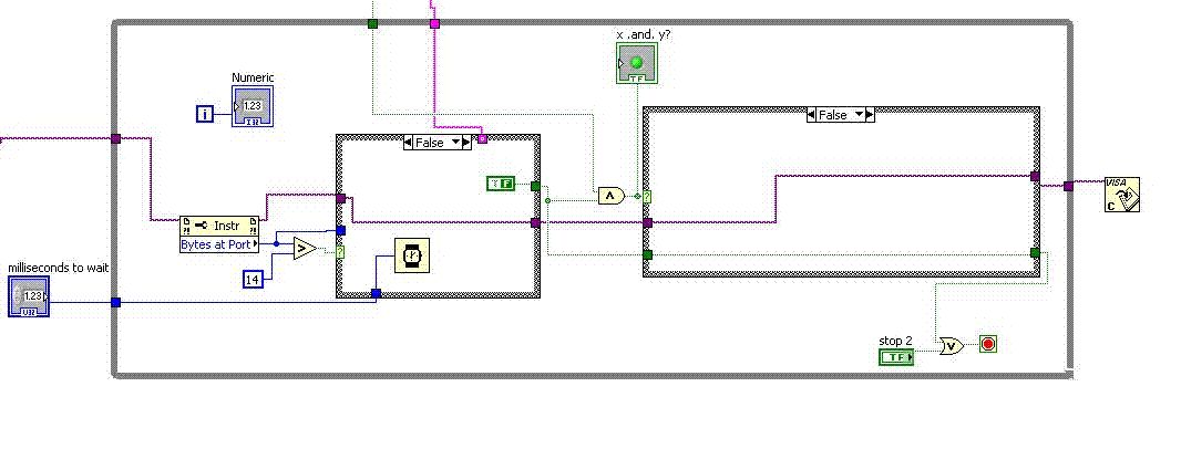 Ich mach das so wie im Anhang. Sobald Bytes eingelesen wurden und die Anzahl Zeichen (in meinem Beispiel mehr als 200) passt, dann werte ich aus (True case, nicht abgebildet) im anderen Fall warte ich 100ms (bei mir kommen alle 1s Werte). In den 100ms müssen dann natürlich alle 200 Zeichen bereits da sein (Baudrate beachten).