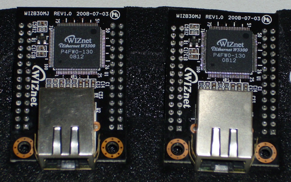 Verkaufe hier folgende Artikel: WIZ200WEB: 1 Stück Ethernet Web Server Gateway mit WIZNET Ethernet IC W5300 (hardwired TCP/IP) mit MCU Atmel ATMEGA128L-8AU sowie externes RAM und serial Flash. Das Ganze mit RJ45 Buchse, Übertrager und in Modulbauform mit 2 Stiftleisten auch für Experimentierplatine. 2 Bilder für Ober- und Unterseite des Moduls, sowie das Datenblatt hängen an. Das Modul ist völlig unbenutzt. Verkaufe das Modul für 25€ + Versand Weiterhin verkaufe ich: WIZ830MJ: 2 Stück Ähnlich wie oberes Modul, jedoch ohne Onboard MCU, RAM und serial Flash Bild und Datenblatt ebenfalls im Anhang. Module sind ebenfalls unbenutzt. je Modul 12€ + Versand bei Interesse email an mich electronic-arts [ät] gmx.de Gruß Dirk