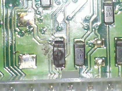 Hi, Auf dem BILD 224 seht ihr ziemlich mittig den zu ersetzenden baustein mit der bezeichnung GN1M, links die zei freien Lötpads verlangen nach einem neuteil das alter verbrante seht ihr im Bild 725. Ich muss zugeben die bilder sind nicht super aber ich habe gerade nur ein handy zur hand ich werd heute abend mit der Normalen Digicam noch versuchen was besseres zu liefern.