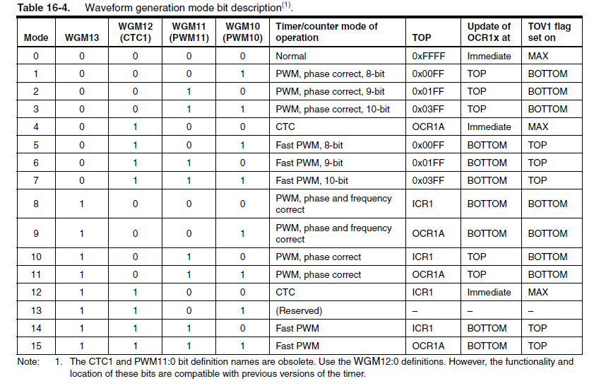 4 | TCCR1B |= (1<<WGM13) | (1<<WGM12) | (1<<CS11); |