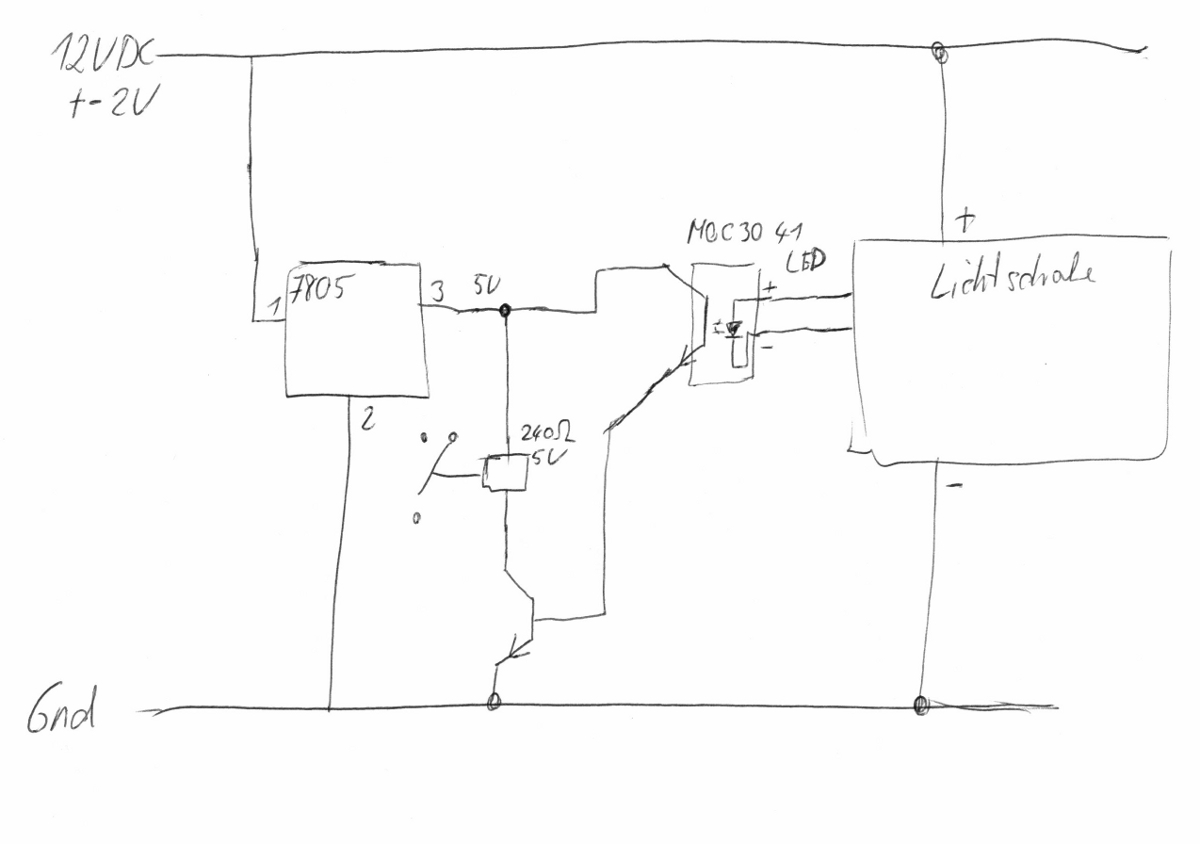 Guten Tag, habe ein Kleines Problem mit einer Lichtschranke die ich mir Günstig zugelegt habe, diese soll in einen Zieleinlauf einer Zeitmessanlage arbeiten, sie besteht aus einem Sender und einem Empfänger (Abus LS2030) Leider ist es jetzt so das der Empfänger eine Ein-/Auschaltverzögerung besitzt. Dies ist aber leider nicht so ganz glücklich, es dauert zu lange bis das Relais anzieht und abfällt. Es gibt 2 LED´s auf der Platine, eine Signalisiert sofort wenn eine Unterbrechung der Schranke entsteht, die 2te den Zustand des Relais. --Die Spannungsversorgung der Lichtschranke ist 12VDC -+2V --Und ich Brauch einen Relaiskontakt um die +12V Potenzialfrei an die Zeitmessanlage zurück zu geben! Mein Gedanke war jetzt wie auf der Seite: http://www.moddingtech.de/tutorials/44-lichteffekte/121-hdd-light-flasher.html den Anschluss der Signal LED per Optokoppler abzugreifen und dann mit einem Transistor das Relais zu steuern Um nicht von der Versorgungsspannung mit dem Schwankenden Spannungspegel abhängig zu sein wollte ich dies alles mit einen 5 V Festspannungsregler betreiben so ist das Relais dann auch in 5V mit 240 Ohm bis jetzt denke war es alles noch einfach für mich, leider hab ich in der Berufsschule nicht ganz aufgepasst was die Transistoren angeht (SPS war spannender :) ) ist die Schaltung so vom Prinzip Ok? was benötige ich für teile, es eilt nicht und ich muss sowieso bei Reichelt bestellen. Mfg Bastian