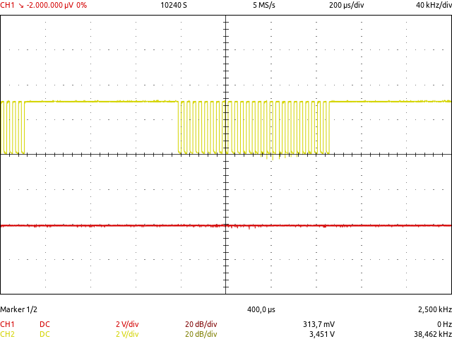 Hi ich suche ein Protokoll b.z.w. infos dadrüber das müsste irgendwas China Mässiges sein. Der Aufbau ist einfach nur das sich 2 Datenarten Abwechseln, es gibst Kurtze Pakete bestehend aus 26 High nibbel und lange bestehend aus 78 High nippels. Je nach Tastendruck Ändert sich einfach nur die kombination aus langen und Kurzen Paketen die Bit anzahl ist immer gleich zusammen sind es immer 8 Pakete pro Tastendruck. Gesendet wird über zwei IR-LEDs wo bei der zweiten einfach das Signal invertiert ausgegeben wird mfg tb